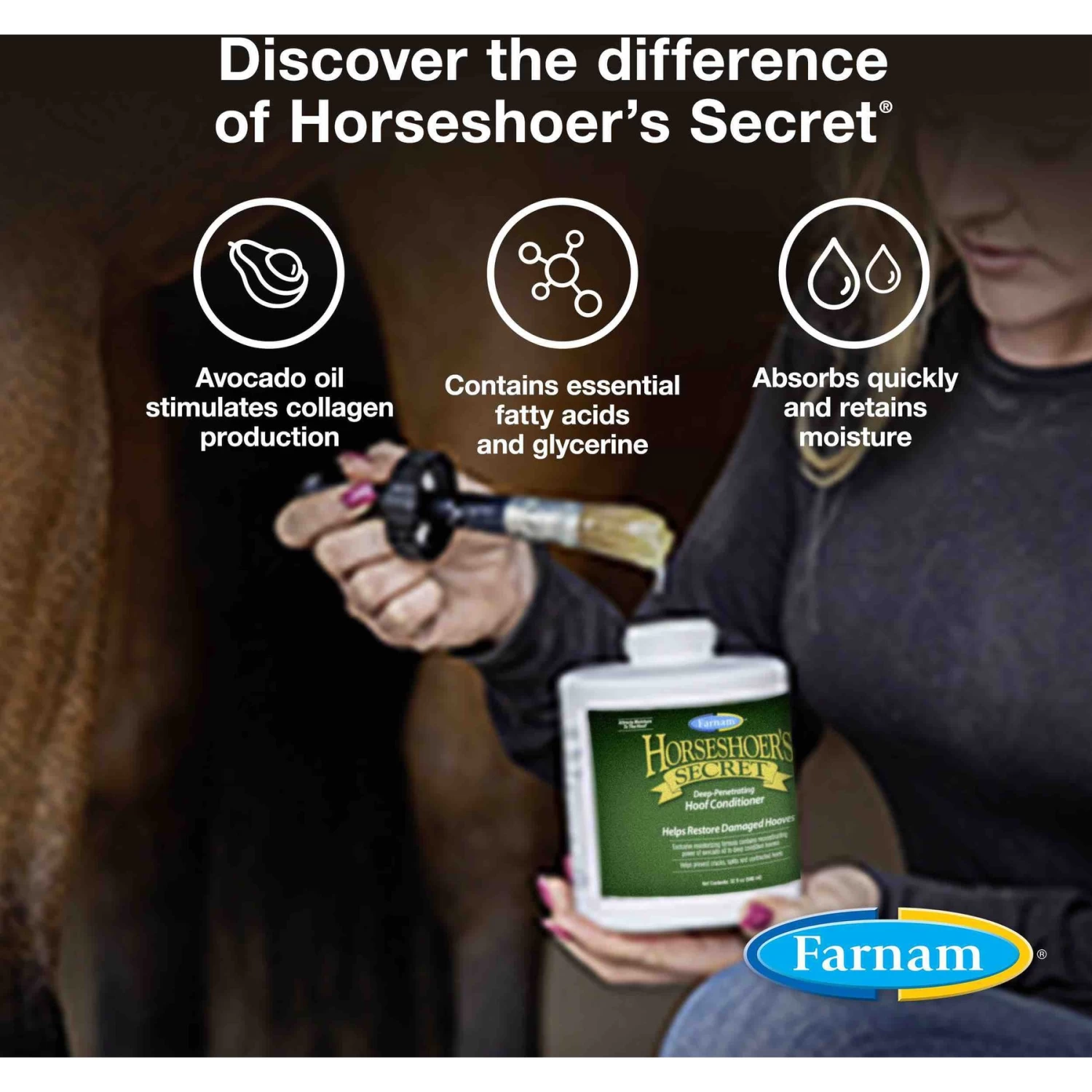 - Moisturizing formula with avocado oil penetrates deeply and stimulates collagen production at the coronary band.