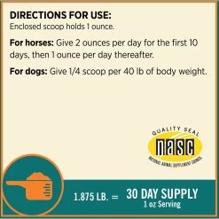 - Powerful, alfalfa-flavored joint pellet supplement for your horse or dog.